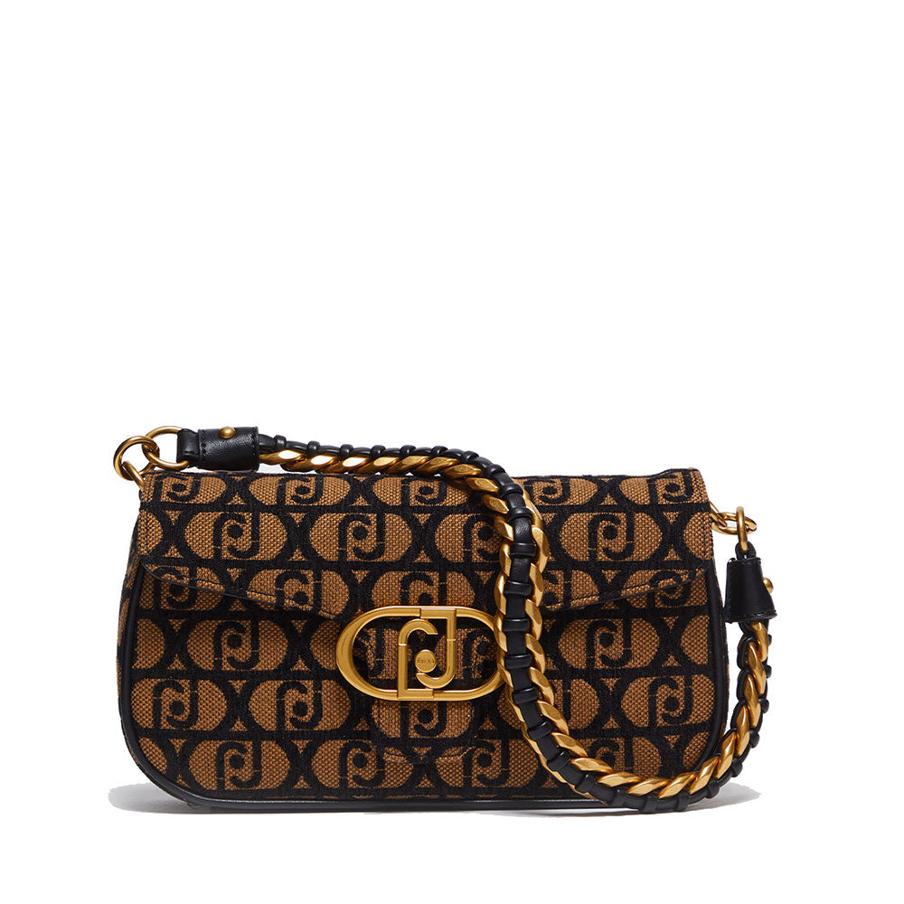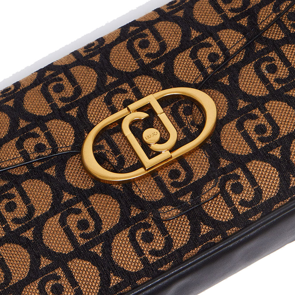 Borsa Donna a Spalla LIU JO in Tessuto Jacquard Marrone con Logo All Over