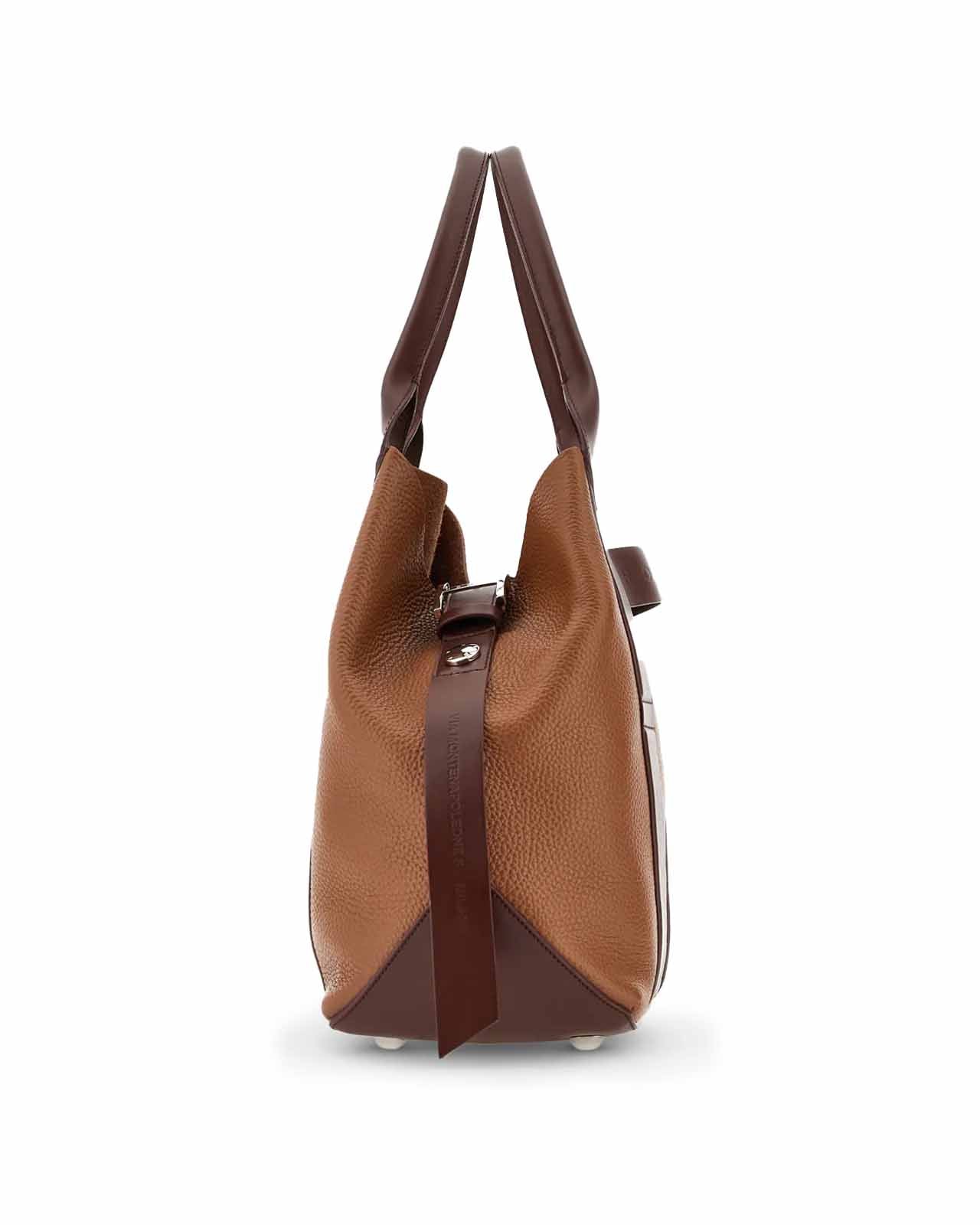 Borsa Script Shopping pelle marrone