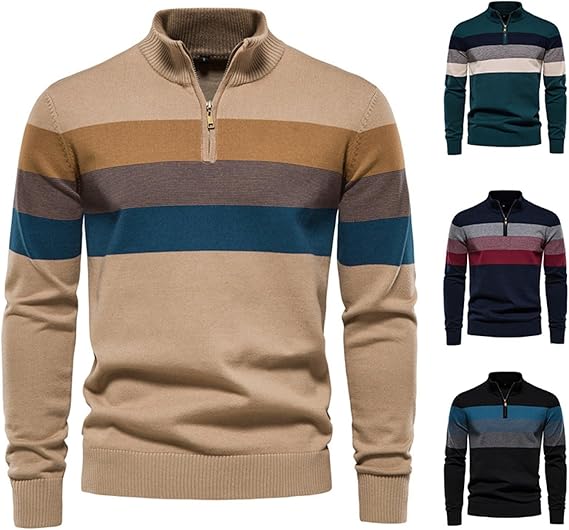 La maglia retrò da uomo, con colletto alto e cerniera, offre non solo calore e comfort, ma si abbina perfettamente all'attuale tendenza della moda retrò. Le strisce audaci aggiungono un tocco vivace al tuo look, mentre il design moderno ti assicura un aspetto sempre trendy.