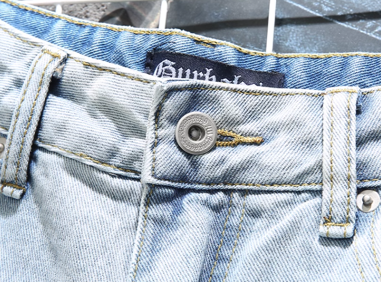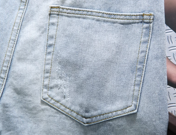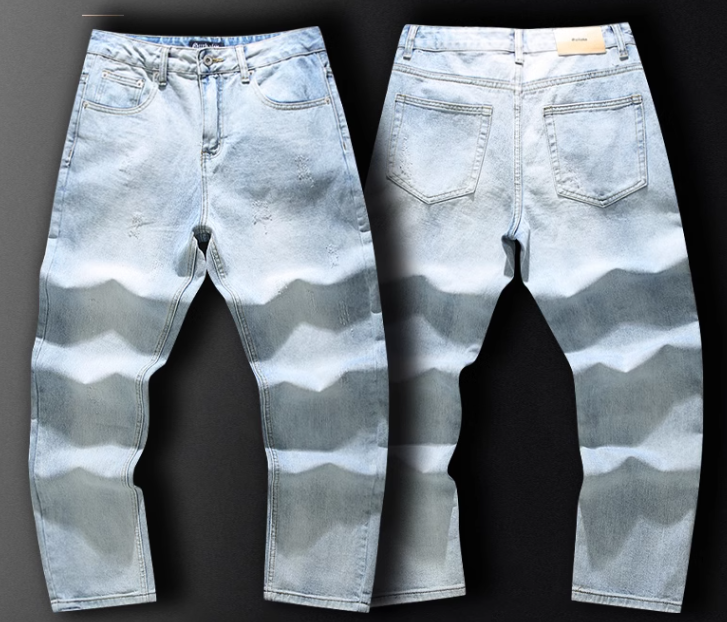 American washed distressed blue jeans for men 2023 new trendy cat scratched loose straight pants