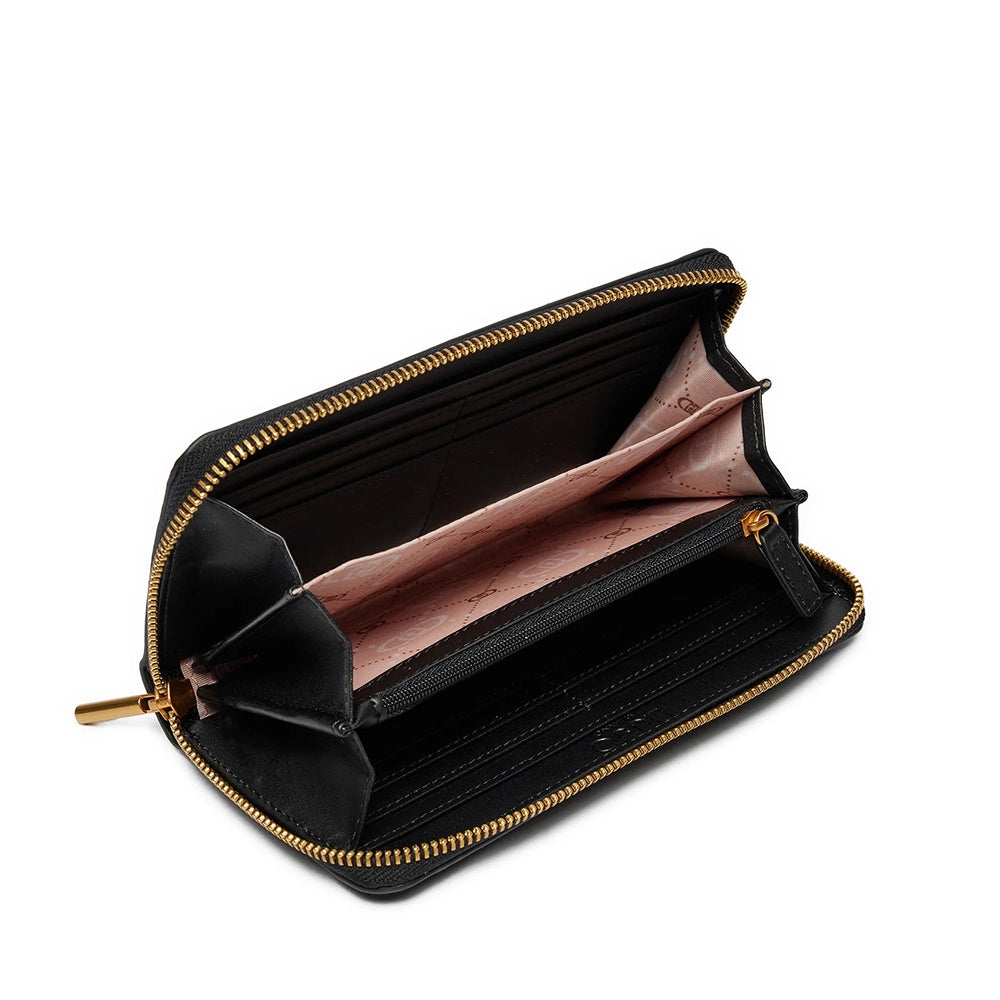 Portafoglio grande zip around in ecopelle con logo monogram all over in rilievo. Fodera interna con logo. Logo in metallo sul davanti. Prodotto "Liu Jo Better".