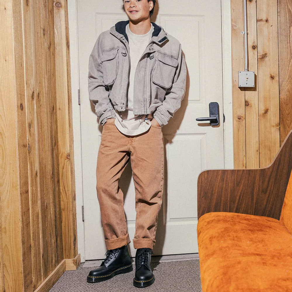 Quel pizzico di carattere in più che non guasta. La nostra suola Bex è la giusta via di mezzo tra la classica suola a cuscinetto e un platform Quad a tutto volume, perfetta da indossare tutto il giorno, tutti i giorni. Qui la suola robusta è alla base della nostra silhouette Original, realizzata in pelle Smooth e contrassegnata dal nostro inconfondibile DNA: cuciture gialle sul guardolo e una fettuccia posteriore con logo AirWair.
