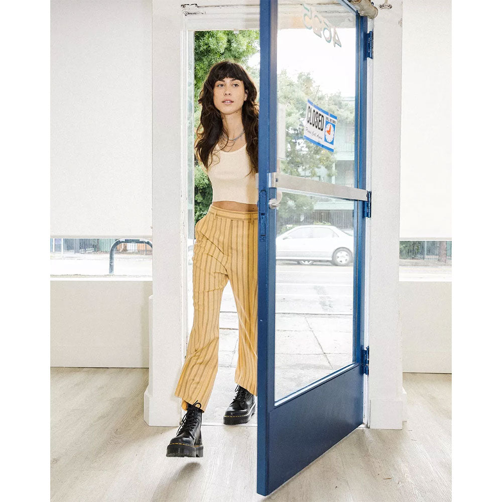 Evoluzione più aggressiva del nostro anfibio a 8 occhielli, Jadon conserva i suoi dettagli originali: bordi scanalati, cuciture gialle e una fettuccia posteriore con logo, a cui si aggiunge una zeppa solida dal carattere risoluto.