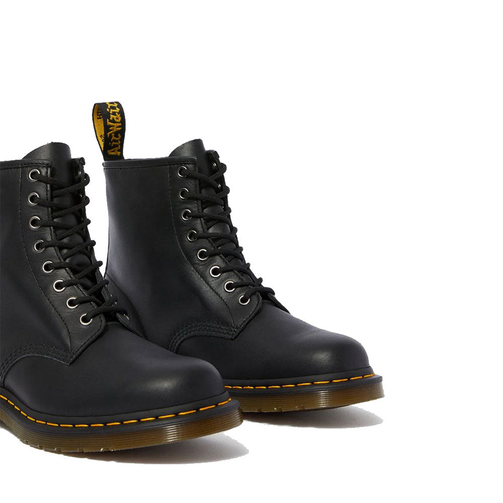 1460 è l’originale stivale Dr. Martens. Il suo DNA immediatamente riconoscibile presenta 8 occhielli, realizzino in pelle Dr. Martens Nappa, bordi scanalati, una fettuccia posteriore con logo, cuciture gialle e una confortevole suola a cuscinetto.