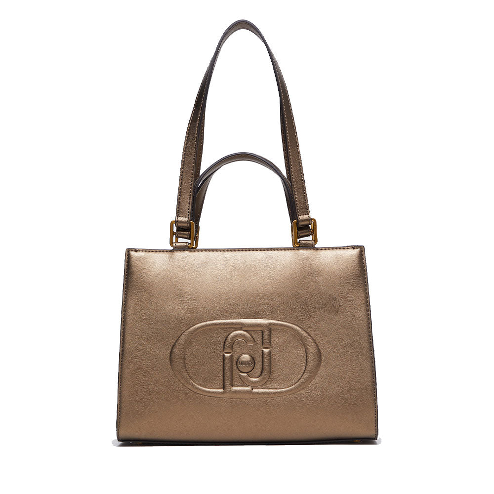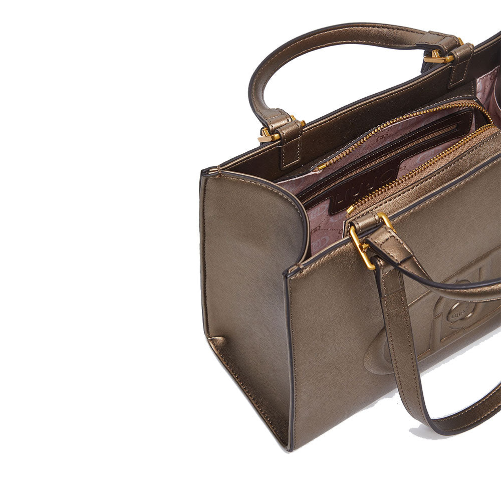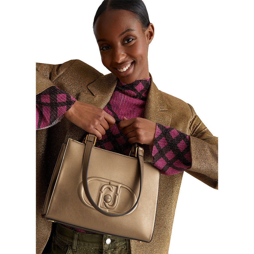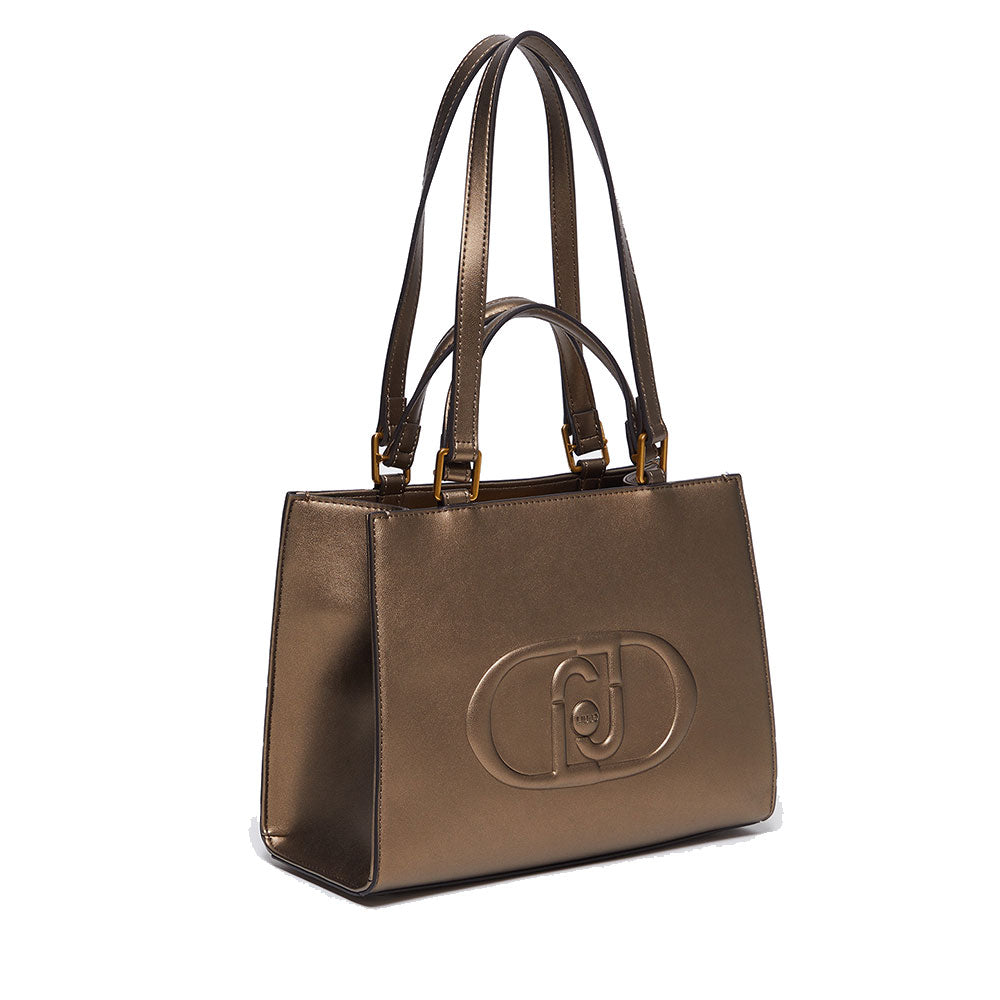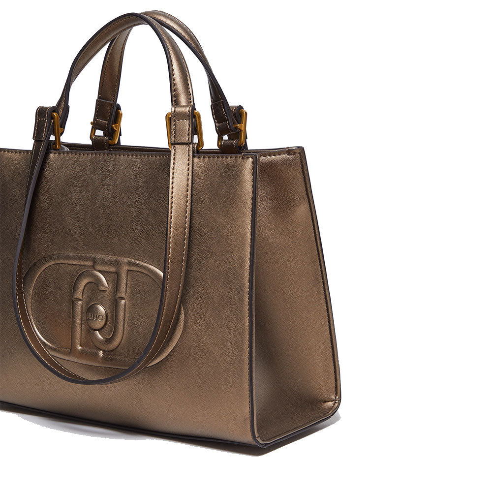 Shopping Bag a Mano e a Spalla LIU JO Better Metallizzato Bronzo con Maxi Logo in Rilievo