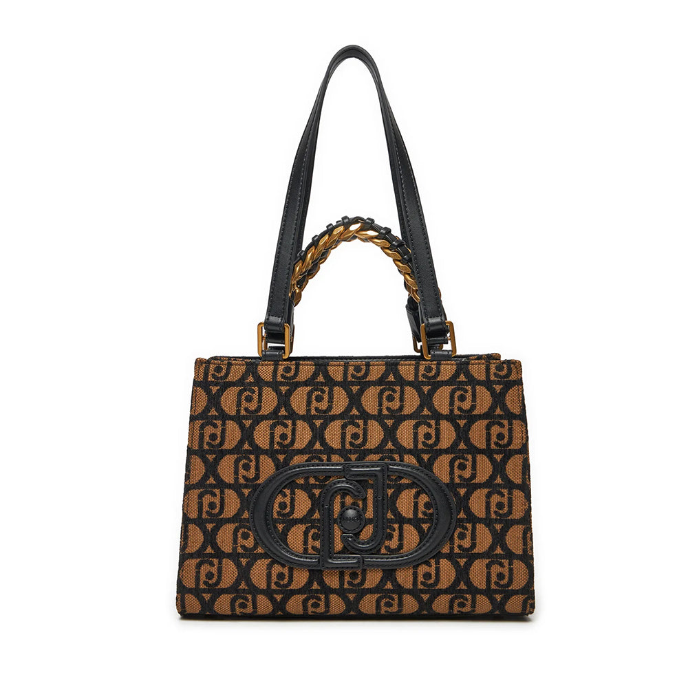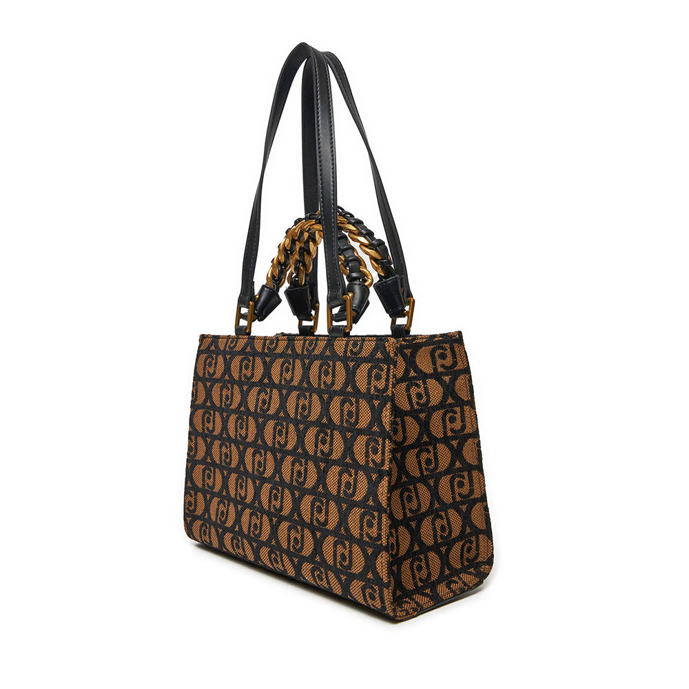 Shopping Bag a Mano e a Spalla LIU JO in Tessuto Jacquard Nero con Logo All Over