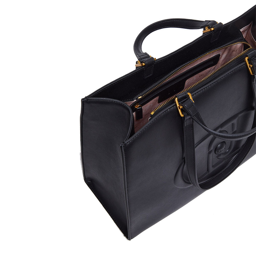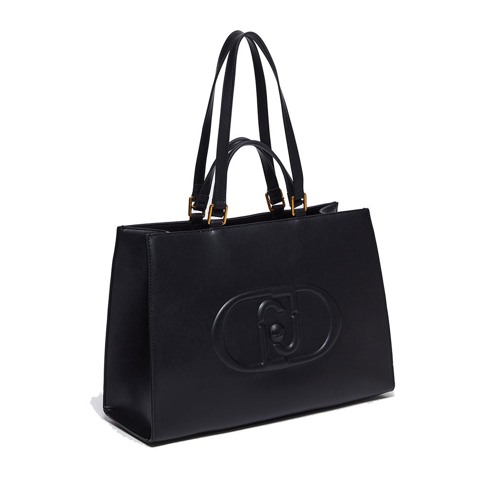 Shopping Bag Large a Mano e a Spalla LIU JO Better Nero con Maxi Logo in Rilievo
