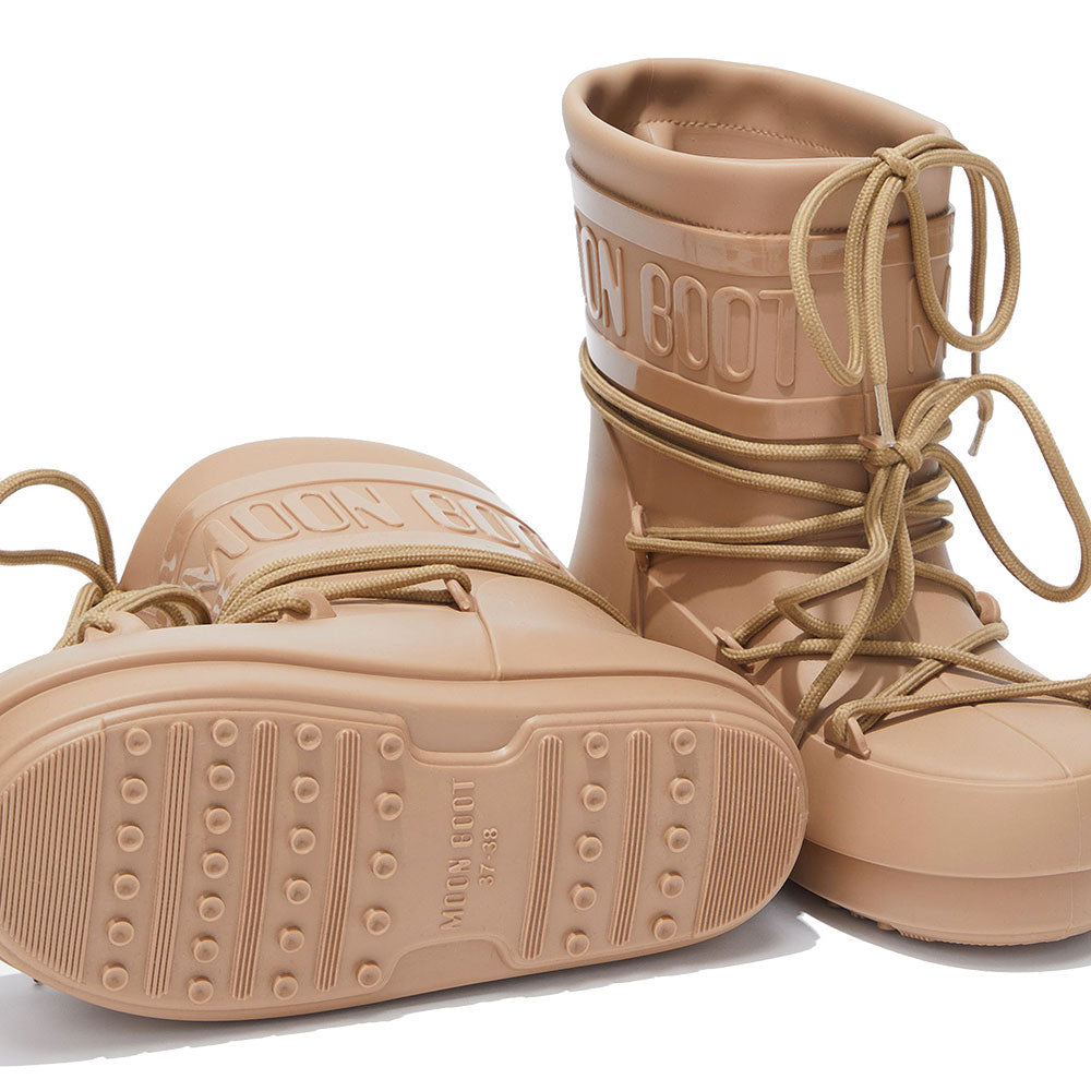 Pioggia, neve, polvere di stelle... questo Moon Boot Low è pensato per affrontare tutti gli elementi, di qualsiasi pianeta si tratti. Realizzato in flessibile Evogum, il modello replica il design originale del 1969 con lacci a incrocio e logo in rilievo. La suola in gomma antiscivolo garantisce la massima presa su ogni tipo di terreno.